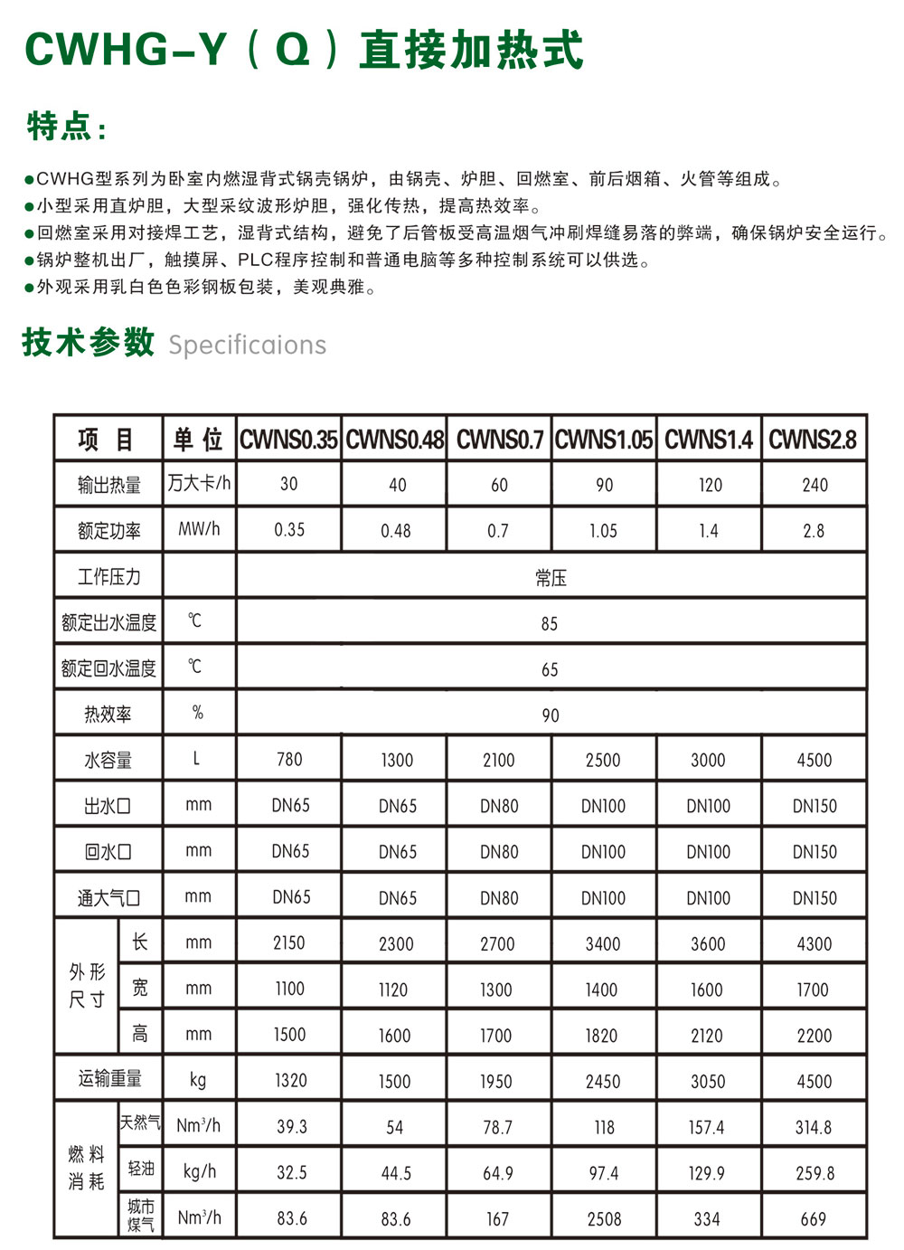 卧式燃油(气)三回程常压热水锅炉